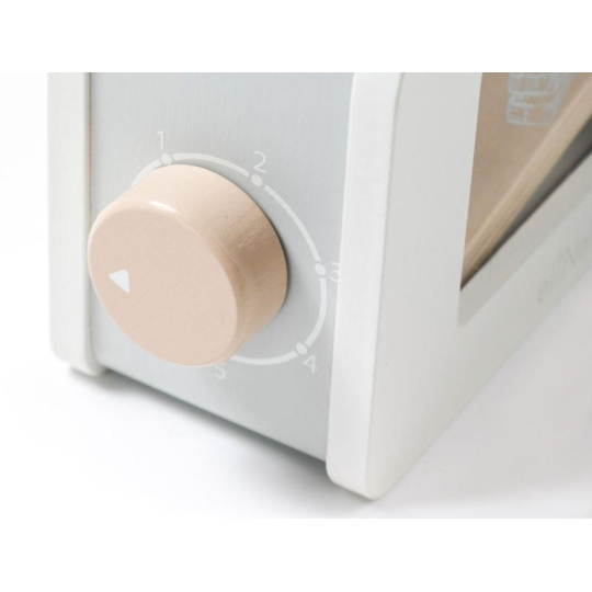 Drevený toustovač v jedinečnom dizajne, s priehľadnou vnútornou časťou, je edukatívna hračka, ktorá umožní deťom každý deň pripravovať chrumkavé toasty s maslom, džemom, se slaninou, šalátom alebo paradajkou pre obľúbené panenky, plyšáky aj rodičov. Drevená hračka v podobe detského toustovača s príslušenstvom je štýlovým doplnkom do detskej kuchynky alebo obchodu.