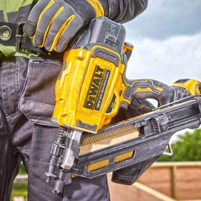 18V bezkartáčový motor pre dlhšiu životnosť, a väčšiu účinnosť a výkon, schopný zatĺkať hrebíky s kruhovou stopkou 90 mm do dreva strednej hustoty