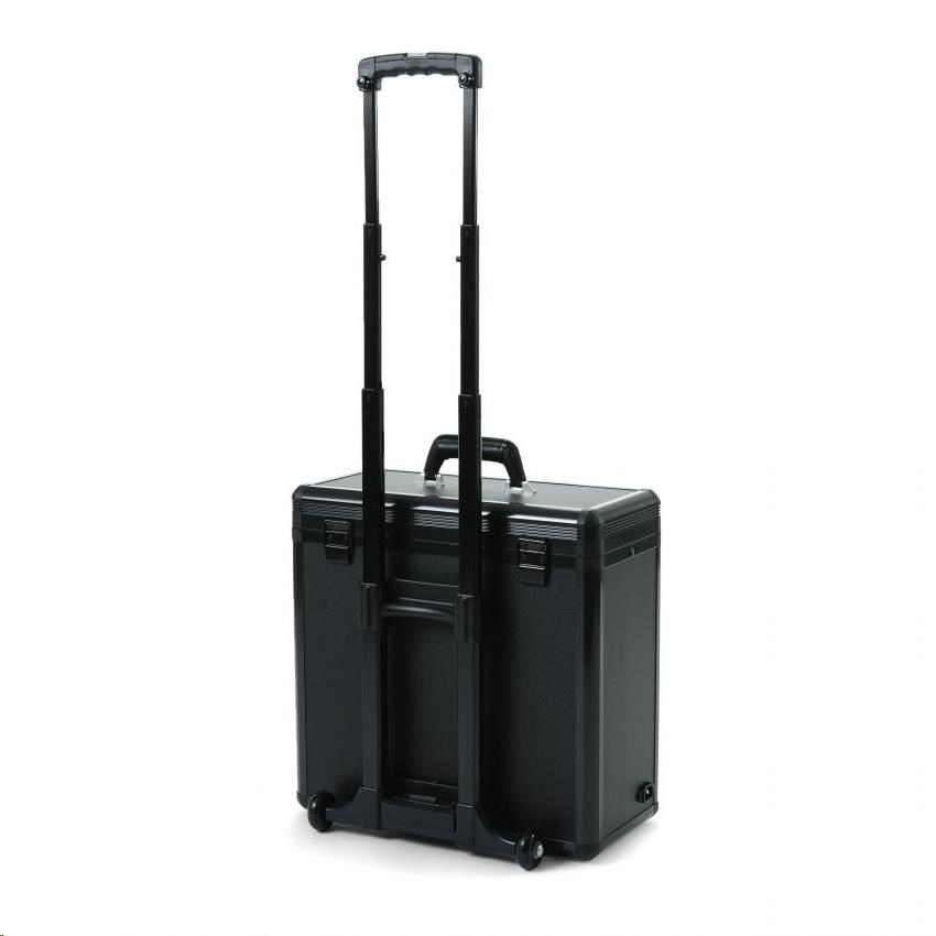 Data Box XL Trolley je robustný kufor s odnímateľným systémom vozíkov pre notebooky do 15.6". Praktické a mimoriadne robustné hliníkové puzdro s výklopným vreckom na tlačiareň umožňuje používateľovi profesionálnu prácu na cestách a zaručuje bezpečnú prepravu notebooku a tlačiarne! Nový výsuvný jazyk na papier zachytí vytlačené dokumenty až do veľkosti DIN A4. Špeciálny princíp "Floor-to-desk", ktorý vyvinula spoločnosť DICOTA, znamená, že tlačiareň a sieťový adaptér zostávajú počas používania kompletne zapojené v puzdre. Notebook sa dá voľne používať na stole. Vozík Data Box XL je tiež uzamykateľný; dodávajú sa dva kľúče. Údaje sa bežne prenášajú pomocou káblov tlačiarne alebo cez Bluetooth. Tlačiareň sa ovláda a batéria sa nabíja prostredníctvom konektora 220/230 V pre nízkoenergetické zariadenie na vonkajšom plášti skrine. Konektor zariadenia s nízkou teplotou môže byť pri preprave zakrytý gumovou krytkou. Odnímateľný systém vozíkov zabezpečuje mimoriadne pohodlnú prepravu vašej mobilnej kancelárie. Ak by ste v určitom okamihu funkciu vozíka nepotrebovali, systém vozíka sa dá veľmi jednoducho odstrániť rýchlym pohybom. Vozík Data Box XL je vhodný pre všetky obľúbené notebooky do 15.6" a pre mobilnú tlačiareň HP OJ 250 - s podporou alebo bez podpory prenosnej súpravy Canon. Ďalšie tlačiarne sú k dispozícii na požiadanie. Upevnenie tlačiarne pre mobilnú tlačiareň HP OJ 250 integrované v skrinke kufra, v závislosti od modelu. Pri výmene tlačiarne možno tento držiak tlačiarne vymeniť za iný model (k dispozícii ako voliteľné príslušenstvo) jednoduchým uvoľnením štyroch imbusových skrutiek Polstrované vrecko na notebook Obzvlášť robustné puzdro Princíp "od podlahy k stolu" Vnútorná kabeláž Uzamykateľná schránka, dva kľúče v balení Konektor pre nízkoenergetické zariadenie 220 V na vonkajšom plášti puzdra Prenos dát bežnými prostriedkami alebo prostredníctvom Bluetooth Odnímateľný systém vozíka Presné prispôsobenie pre HP OJ 250 Viac informácií Viac informácií Číslo položky D31846 Farba čierna Objem v litroch 0 Materiál Hliník / Con-Pearl® Záruka 24 mesiacov EAN 7640186419796 Max. Rozmery zariadenia (mm) 410 x 310 x 60 mm 16.14 x 12.2 x 2.36 palcov Rozmery výrobku (mm) 455 x 445 x 280 mm 17.91 x 17.52 x 11.02 palcov Hmotnosť 7.4 kg / 16.28 libier..
