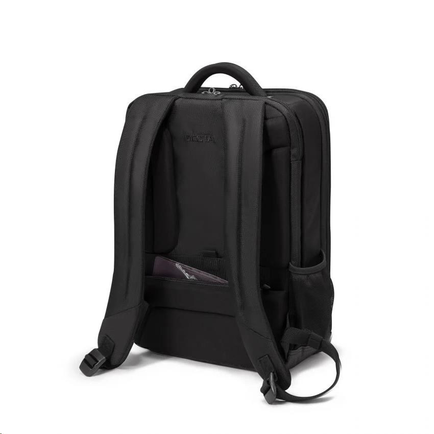 Eco Backpack PRO 12-14.1â€- Profesionálny batoh s ochranným polstrovaním a prepracovanou funkčnosťou Dnešné činy formujú svet zajtrajška. Preto sa v spoločnosti DICOTA venujeme vývoju riešení šetrných k životnému prostrediu, a preto všetky predmety v našich kolekciách ECO vyrábame z udržateľného recyklovaného PET. Opakovane používame až 31 PET fliaš, takže dostanete ekologický výrobok s doživotnou zárukou. Aj naše výrobky z PET majú kvalitu, vzhľad a povrchovú úpravu, ktoré poznáte a máte radi. Špecifikácie Art.no.: D30846-RPET EAN: 7640186419925 Hmotnosť: 1.34 kg Objem: 21 litrov Materiál: 1680D rPET Polyester Záruka: doživotná / 30 rokov Rozmery: 390 x 305 x 200 mm Max. Rozmery zariadenia: 340 x 245 x 40 mm Charakteristika - Vyrobené z 21.5 recyklovaných PET fliaš - Úložný priestor s objemom 21 litrov - Uzamykateľná a polstrovaná priehradka na notebook so systémom Fitall a protišmykovou technológiou - Maximálna bezpečnosť vďaka pamäťovej pene a ochrane rámu z materiálu EVA - Vrecko s tvarovanou vložkou z materiálu EVA Nylex na tablet do 12.9" - Rozšíriteľná hlavná priehradka s veľkorysým úložným priestorom - Priestranné predné vrecko na zips, držiak na kľúče a pracovisko na príslušenstvo - Ďalšie predné vrecko na napájaciu jednotku a kábel..