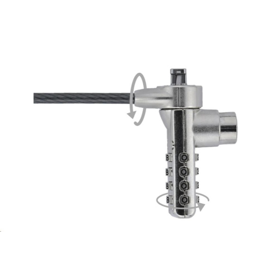 Tento zámok DICOTA sa hodí do všetkých štandardných slotov T-Lock (T-Bar*): je možné účinne zabezpečiť notebooky, projektory, tlačiarne a monitory. Oceľové lanko s dĺžkou 200 cm a priemerom 4,8 mm je navrhnuté tak, aby bolo mimoriadne dlhé a mimoriadne pevné. Notebooky, projektory, tlačiarne a monitory je možné účinne zabezpečiť. Štyrmiestny kód umožňuje nastaviť individuálny číselný kód z 10 000 možných číselných kombinácií zabezpečuje požadované zabezpečenie. Tento zámok sa používa v systéme nadriadeného zámku, ktorý umožňuje prístup jednotlivým používateľom aj správcom systému prostredníctvom hlavného kľúča. Každý systém je individuálne navrhnutý a vyrobený špeciálne pre vás. Podrobnosti vám rád načrie váš partner DICOTA. *T-Bar™ je ochranná známka tretej strany bez vazby na spoločnosť DICOTA SCHWEIZ AG.