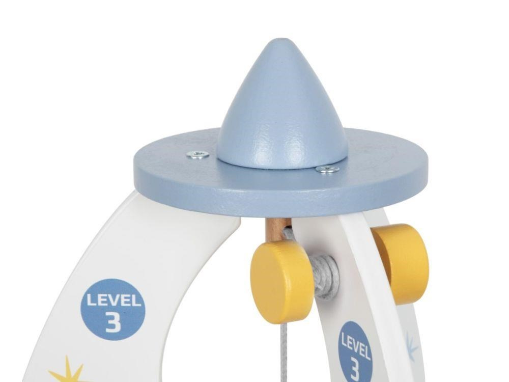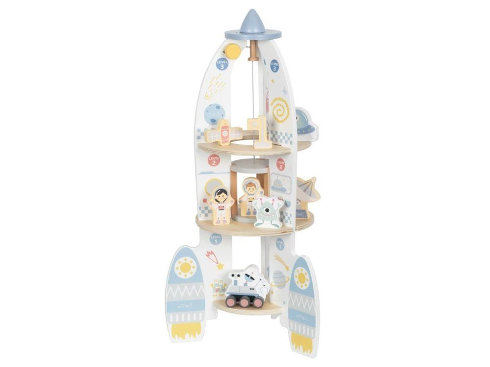 Drevená hračka v podobe rakety vyvezie vaše dieťa do vesmíru, aspoň v jeho fantázii. Drevená raketa s doplnkami a výťahom je zábavnou hračkou, s ktorou môžu deti lietať po dome či byte, hrať si s astronautmi priamo v rakete, vozíť ich výťahom rovnako ako potrebné vybavenie na misiu. Hračka dokonale potrénuje motorické zručnosti, rozvíja detskú fantáziu a kreativitu.