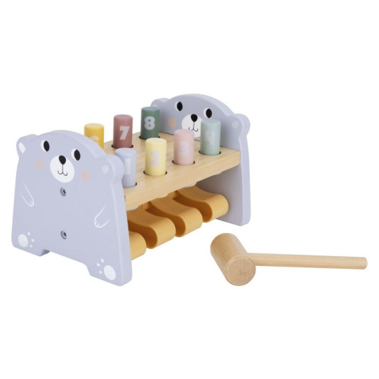 Zatláčačka pre deti je klasická drevená hračka, ktorá poteší každé dieťa. Drevená zatláčačka v krásnych farbách, s roztomilým medvídkom, s očíslovanými valčekmi a malou vychytávkou rozvíja detské zručnosti, naučí deti spoznávať farbičky aj číslice.
