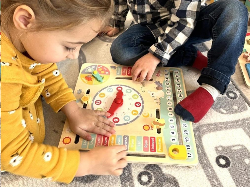 Dobyté kalendár v slovenčine je krásnou vzdelávacou hračkou aj jedinečnou dekoráciou do izbičky dievčat aj chlapcov. Detský kalendár v farebnej kombinácii prírodného dreva a krásnych farieb, s prírodnými motívmi a zvieratkami, prevedie deti celým kalendárnym rokom. Kalendár s lesnými zvieratkami pomôže deťom s orientáciou v čase. Pre deti je veľmi ťažké pochopiť a naučiť sa niečo, čo si nedokážu predstaviť. S detským kalendárom budú mať deti názorné ukážky, ako plynie deň, aké môže byť vonku počasie, ako sa striedajú ročné obdobia, ako idú jednotlivé dni a mesiace po sebe. Uprostred kalendára deti nájdu veľké farebné hodiny.