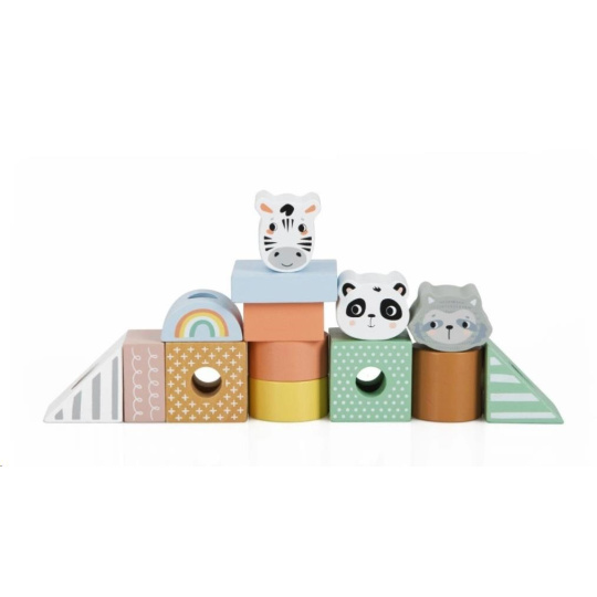 Drevený vláčik pre deti, s kockami a zvieratkami zo ZOO, je krásnou multifunkčnou hračkou aj dekoráciou do detskej izby. Jemné pastelové farby vláčik dodávajú atraktívny vzhľad a vďaka neutrálnym farbám je vhodným darčekom pre dievčatá aj chlapcov. Drevené kocky a obľúbené zvieratá môžu deti preháňať po svojom pokojíčku aj po celom dome či byte. Deti si môžu hrať so samotným vláčikom, s jeho jednotlivými vagónmi, nakladať a vykladať kocky aj zvieratká, vytvárať rôzne kombinácie alebo si hrať so samotnými kockami. Pri hre s vláčikom a jeho časťami deti zdokonaľujú motorické zručnosti, koordináciu očí a rúk, logické myslenie, rozvíjajú predstavivosť a kreativitu.