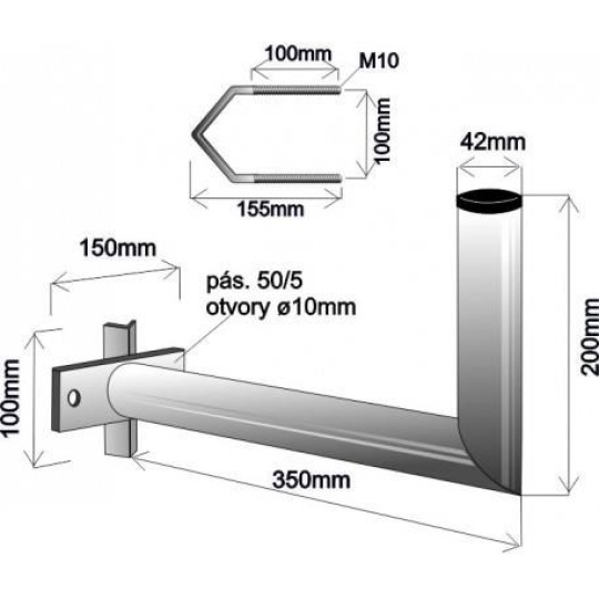 Držiak antény na stožár s vinklom, dĺžka 35cm