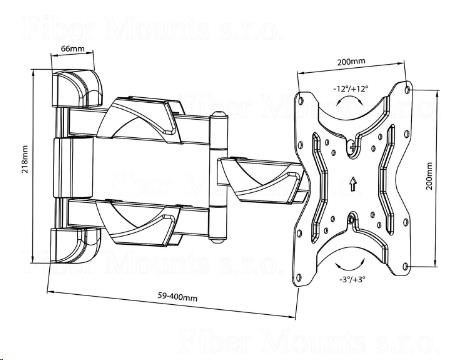 Držiak LED plazma LCD televízie Fiber Mounts DT742 Kvalitný a cenovo dostupný držiak na zavesenie TV 13-42 palcov na stenu, otáčanie do strán, náklon, nastaviteľná vzdialenosť, korekcia roviny, krytky na káblovú správu Výnimočný pomer kvality a ceny robí z držiaka Fiber Mounts DT742 jeden z najpredávanejších držiakov na slovenskom trhu. Jednoduché a bezpečné zavesenie všetkých typov a značiek televízorov s uhlopriečkou 13-42 palcov, jednoduché nastavenie do požadovanej polohy - otáčanie do strán, náklon, vzdialenosť od steny, korekcia roviny. Oceľová konštrukcia držiaka je osadená dizajnovými krytkami na fixáciu káblov. Dodávame vrátane inštalačného materiálu. Držiak na LED plazmové a LCD televízie s uhlopriečkou 13-42 palcov, otáčateľný do strán, sklápací, dĺžkovo nastaviteľný, VESA štandard, nosnosť 25kg, vynikajúci pomer kvality a ceny, kryty káblov, záruka 3 roky - Fiber Mounts DT742 Technické údaje: nosnosť 25kg podporuje VESA štandardy 75x75 až 200x200 odporúčaná uhlopriečka televízora 13-42 palcov otáčanie do strán +/- 90° náklon nahor alebo nadol +/- 12° korekcia roviny +/- 3° nastaviteľná vzdialenosť od steny v rozmedzí 59 až 400mm dizajnové krytky na fixáciu káblov výnimočná kvalita oceľová konštrukcia zaistenie TV proti vysadeniu jednoduchá a rýchla montáž farebné prevedenie čierne záruka 3 roky Držiak Fiber Mounts DT742 podporuje VESA štandardy: VESA 75x75 VESA 100x100 VESA 200x100 VESA 200x200