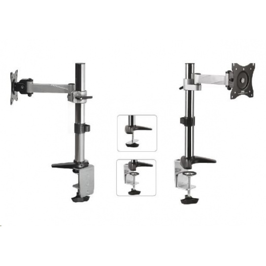 Držiak monitora na stôl Fiber Mounts MC717 Stolný držiak na monitor 15÷30", otočný, sklopný, výškové nastavenie, funkcia pivot Veľmi pekný, kvalitný a hlavne cenovo dostupný stolový držiak na zavesenie monitorov s uhlopriečkou 15÷30 palcov. Plná nastaviteľnosť polohy obrazovky - otáčanie do strán, náklon, výšková regulácia, horizontálne alebo vertikálne otočenie obrazovky, korekcia roviny. Stolný držiak MC717 podporuje VESA štandard 75x75 a 100x100, odporúčané maximálne zaťaženie je 8kg. Súčasťou balenia je montážny materiál a 2 typy uchytenia na stolovú dosku - na kraj stolu alebo skrz stolovú dosku kdekoľvek do priestoru. Držiak je výbornej kvality a naozaj pekného dizajnu. Držiak na monitor do kancelárie, domácnosti, firmy alebo do škôl -Fiber Mounts MC717 - otočný, sklopný, výškovo nastaviteľný, funkcia pivot, TOP kvalita, dizajn, vynikajúca cena za stolový držiak Technické údaje: nosnosť 8kg podpora VESA štandardu 75x75 a 100x100 odporúčame na monitor s uhlopriečkou 15" až 30" otáčanie do strán +180° / -180° náklon +35° / -35° horizontálne alebo vertikálne otočenie obrazovky monitora - funkcia pivot korekcia roviny maximálne oddialenie monitora od nosníka 246mm 2 typy uchytenia na stôl - na kraj stola / skrz stôl kdekoľvek do priestoru minimálna sila stolovej dosky 10mm maximálna sila stolovej dosky 85mm priemer nosníka 35mm výška nosníka od stolovej dosky 400mm nastaviteľná výška ramena vynikajúca kvalita snadné nastavenie polohy obrazovky monitora materiál hliník farba strieborná + chróm záruka 3 roky
