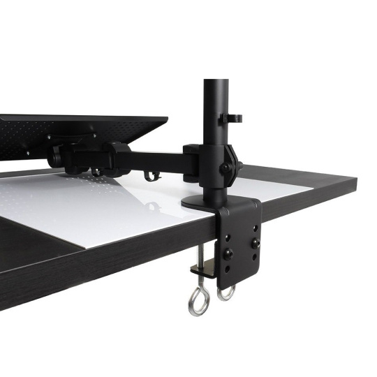 Držiak notebooku alebo laptopu a monitora Fiber Mounts FM23 Kvalitná zostava stolový držiak na monitor 15-27" a držiak na notebook laptop 13-17", polohovateľný, stabilný a pevný Vybavte si kanceláriu skvelým pomocníkom, ktorý vám ušetrí veľa miesta a zlepší ergonómiu pri práci. Zostava Fiber Mounts FM23 obsahuje držiak na monitory 15-27" a držiak na notebooky alebo laptopy s uhlopriečkou 13-17". Držiak monitora podporuje VESA 75x75 a 100x100, je možné ho otáčať do strán, nakláňať, rotovať a výškovo polohovať. Držiak notebooku je možné otáčať do strán a výškovo polohovať. Farebné prevedenie čierne, celková nosnosť 20kg, celokovová konštrukcia. Stolový držiak na monitor a notebook do vašej kancelárie - Fiber Mounts FM23 Technické údaje: nosnosť 20kg na monitory 15-27" na notebooky 13-17" VESA štandard 75x75 a 100x100 otáčanie do strán +/- 135° nakláňanie monitora +/- 90° upevnenie na stolovú dosku s hrúbkou 10-100mm farba čierna záručná doba 3 roky Stolový držiak na monitor a notebook do vašej kancelárie - Fiber Mounts FM23 Držiak na monitory podporuje štandardy VESA: VESA 75x75 VESA 100x100