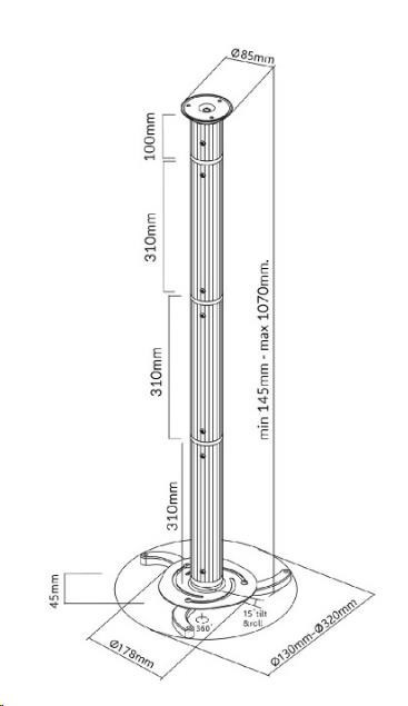 Nástenný držiak na zavesenie menších televízorov alebo monitorov s uhlopriečkou 15-30". Držiak podporuje VESA štandardy 75x75 a 100x100, umožňuje nastavenie vzdialenosti od steny od 82mm do 216mm, možnosť naklopenia až +/- 20° a otáčania do strán +/- 45°. Oceľová konštrukcia s nosnosťou 15kg. Farebná úprava čierna, záruka 5 rokov.