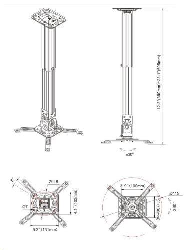 Stropný držiak pre dataprojektor NB T817-60 Spoľahlivý, nastaviteľný stropný držiak na zavesenie projektorov Kvalitne spracovaný držiak pre projektory s možnosťou výškového nastavenia. Projektor je možné po zavese otočiť o 360°, nie je chýba naklon +/- 20° ani systém na vedenie kábla. Nosnosť držiaka je 11 kg, dizajn je kompletne vyvedený v bielom prevedení. Výhodou je možnosť inštalácie na šikmý strop. Odporúčame aj náročnejším zákazníkom. Technické údaje: nosnosť 11kg otočný o 360° naklon +/- 20° nastaviteľná vzdialenosť od stropu 383 - 600mm nastavenie uhla voči stropu +/- 45° možnosť inštalácie na šikmý strop biele prevedenie vysoká kvalita pevná a odolná konštrukcia systém vedenia kábla inštalačný materiál súčasťou balenia záruka 10 rokov