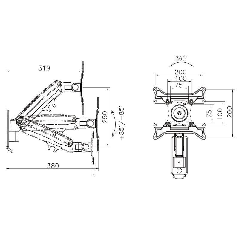 Držiak TV monitoru NB F425 Nástenný držiak na monitory a TV 21-50", otočný +/-90°, sklápací +/-85°, výškové polohovanie 250mm, pivot +/-360°, úchyty na káble, montážny materiál, VESA 75x75 a 100x100, nosnosť 13kg Dizajnový držiak s výškovým polohovaním televízie alebo monitoru s uhlopriečkou 21-50" a hmotnosťou v rozmedzí 3-13kg, podpora VESA štandardov 75x75 a 100x100. Držiak má integrovaný plynový piest, ktorý sa nastaví na hmotnosť obrazovky, vďaka čomu je výškové polohovanie jednoduché a rýchle - bez náradia, bez námahy. Držiak umožňuje úplné nastavenie polohy TV: výškové polohovanie 250mm, otáčanie do strán podľa veľkosti obrazovky až +/-90°, naklápanie +/-85°, vysúvanie a zasúvanie ku stenu 100-380mm, rotáciu obrazovky vďaka funkcii pivot +/- 360°. Veľmi jednoduchá inštalácia. Farebné prevedenie čierne. Balenie obsahuje montážny materiál. Záruka 3 roky. Nástenný držiak na televízie a monitory s nastavením výšky NB F425 Technické údaje: na televízory a monitory s hmotnosťou 3 kg až 13 kg podporuje VESA štandardy 75x75 až 100x100 ideálne na TV a monitory s uhlopriečkou 21" až 50" nastavenie vzdialenosti od steny 100 mm až 380 mm nastavenie náklonu obrazovky +/- 85 ° otáčanie obrazovky do strán +/- 90 ° výškové polohovanie 250 mm funkcia PIVOT - rotácia obrazovky +/- 360° TOP kvalita, jednoduché polohovanie, krásny dizajn farebné prevedenie čierne inštalačný materiál súčasťou balenia záruka 3 roky Výškovo polohovateľný, otočný, sklápací a výsuvný držiak na TV a monitory NB F425 Držiak TV monitoru NB F425 podporuje VESA štandardy: VESA 75x75 VESA 100x100 Držiak F425 je vhodný na všetky typy a značky televízorov, ktoré majú hmotnosť 3-13 kg a ktoré podporujú ktorýkoľvek z vyššie uvedených VESA štandardov. Na uhlopriečke televízie nezáleží - uvedené uhlopriečky sú iba orientačné.