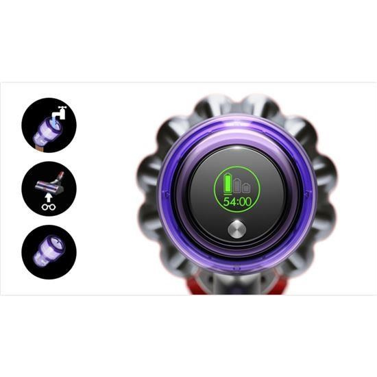 Technológia spoločnosti Dyson optimalizujúca výkon a spúšťacie tlačidlo šetriace batériu pomáhajú maximalizovať dobu chodu použitím iba takéhoto výkonu, aký potrebujete. - Inteligentne informuje v reálnom čase