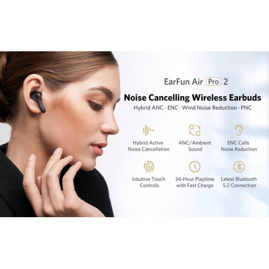 EARFUN bezdrátová sluchátka Air Pro 2 TW300B, černá