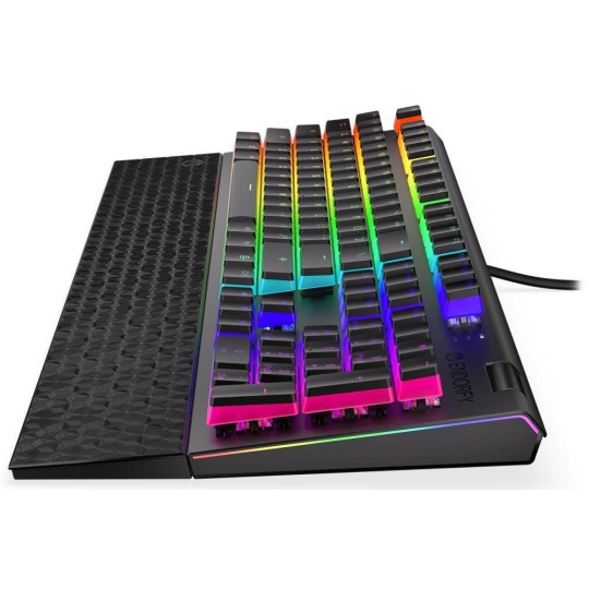 Plnohodnotná mechanická klávesnica pre každého vášnivého hráča. Vďaka spínačom Kailh Blue ponúka výbornú odozvu a výdrž pás 50 miliónov stlačení. Konštrukcia z hliníku vykazuje iba tú najvyššiu možnú odolnosť a stabilitu. Špičkové pohodlie zabezpečí odnímateľná opierka dláň. Klávesy sú RGB podsvietené a ponúkajú možnosť vlastného nastavenia. Klávesy sú navyše tiež plne programovateľné, vďaka čomu je možné klávesnicu individualizovať presne podľa potrieb hráča a hrané hry. Klávesnica disponuje tiež otočným ovládačom hlasitosti. Samozrejme nechýba ani funkcia Anti-Ghosting a N-Key rollover. Pripojenie je realizované cez odnímateľný USB kábel.