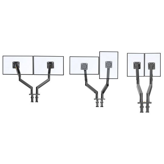 Kancelársky stolný držiak na 2 monitory NB G32 Ergonomický stolný držiak na 2 monitory 17-32", nastaviteľná výška, otáčanie, naklápanie, vysúvanie, PIVOT, vedenie káblov, VESA 75x75 a 100x100, nosnosť 30kg Profesionálny dizajnový stolný držiak na 2 monitory 17-32" najvyššej kvality, ľahko polohovateľný a ergonomický. Výšková poloha monitorov od stolovej dosky 200-530mm, otáčanie do strán +/-360°, naklápanie monitorov +85°/-30°, maximálna vzdialenosť od uchytenia 630mm, PIVOT, USB port, 2 typy stolových držiakov, aretácia otáčania a vysúvania, VESA 75x75 a 100x100, nosnosť 30kg Kancelársky stolný držiak na 2 monitory, plne ergonomický NB G32 Technické údaje: celková nosnosť 30kg plynová pružina s nastavením na hmotnosť každého monitora 2-15kg podpora VESA štandardov 75x75 a 100x100 plynulé nastavenie výšky monitorov od stolovej dosky 200-530mm max. vysunutie od stolového uchytenia 630mm naklápanie monitorov +85° / -30° otáčanie každého ramena do strán +/- 360° funkcia PIVOT (rotácia monitorov +/-360°) systém vedenia káblov aretácia ramien v polohe (červíky) USB port na podstavci 2 typy stolových držiakov (na okraj alebo do priestoru) najvyššia kvalita s dôrazom na detail záruce 3 roky Nezávislé polohovanie monitorov 17-32" na stolnom držiaku NB G32 Kancelársky držiak na 2 monitory podporuje VESA štandardy: VESA 75x75 VESA 100x100 možnosť zakúpenia vrátane VESA nástavca 200x100 (viz. vyššie zvoľte VESA štandard) možnosť zakúpenia vrátane VESA nástavca 200x200 (viz. vyššie zvoľte VESA štandard) 2 typy stolových držiakov: na okraj stola, max. hrúbka stolovej dosky 80mm do priestoru stolovej dosky cez otvor (10-50mm), max. hrúbka stolovej dosky 90mm