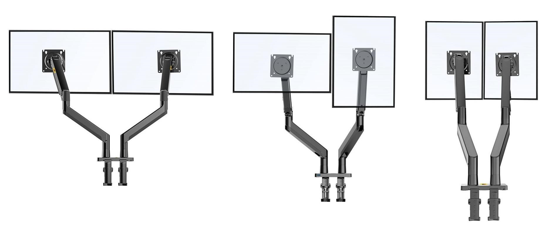 Kancelársky stolný držiak na 2 monitory NB G32 Ergonomický stolný držiak na 2 monitory 17-32", nastaviteľná výška, otáčanie, naklápanie, vysúvanie, PIVOT, vedenie káblov, VESA 75x75 a 100x100, nosnosť 30kg Profesionálny dizajnový stolný držiak na 2 monitory 17-32" najvyššej kvality, ľahko polohovateľný a ergonomický. Výšková poloha monitorov od stolovej dosky 200-530mm, otáčanie do strán +/-360°, naklápanie monitorov +85°/-30°, maximálna vzdialenosť od uchytenia 630mm, PIVOT, USB port, 2 typy stolových držiakov, aretácia otáčania a vysúvania, VESA 75x75 a 100x100, nosnosť 30kg Kancelársky stolný držiak na 2 monitory, plne ergonomický NB G32 Technické údaje: celková nosnosť 30kg plynová pružina s nastavením na hmotnosť každého monitora 2-15kg podpora VESA štandardov 75x75 a 100x100 plynulé nastavenie výšky monitorov od stolovej dosky 200-530mm max. vysunutie od stolového uchytenia 630mm naklápanie monitorov +85° / -30° otáčanie každého ramena do strán +/- 360° funkcia PIVOT (rotácia monitorov +/-360°) systém vedenia káblov aretácia ramien v polohe (červíky) USB port na podstavci 2 typy stolových držiakov (na okraj alebo do priestoru) najvyššia kvalita s dôrazom na detail záruce 3 roky Nezávislé polohovanie monitorov 17-32" na stolnom držiaku NB G32 Kancelársky držiak na 2 monitory podporuje VESA štandardy: VESA 75x75 VESA 100x100 možnosť zakúpenia vrátane VESA nástavca 200x100 (viz. vyššie zvoľte VESA štandard) možnosť zakúpenia vrátane VESA nástavca 200x200 (viz. vyššie zvoľte VESA štandard) 2 typy stolových držiakov: na okraj stola, max. hrúbka stolovej dosky 80mm do priestoru stolovej dosky cez otvor (10-50mm), max. hrúbka stolovej dosky 90mm