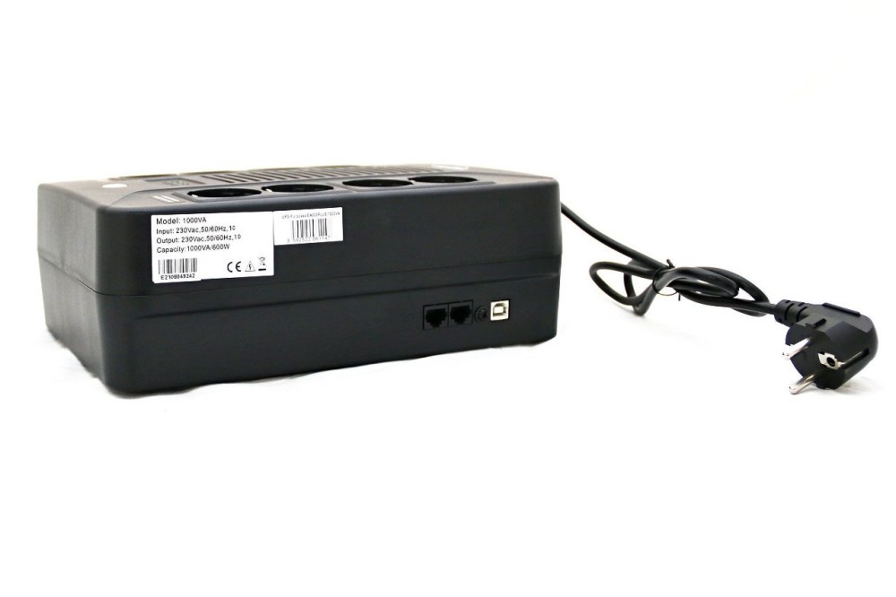 "Line interactive" záložný zdroj EA280P s kompaktnými rozmermi. Konštrukcia umožňuje aj zavesenie na stenu Na prednom paneli je vypínač ON/OFF a indikačná LED dióda
