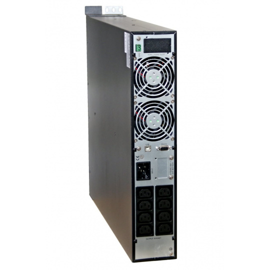 Online záložný zdroj EA903PRT so sínusovým výstupom. Rozmerovo navrhnutý pre serverové aplikácie (montáž do 19" racku). Súčasťou balenia sú plastové podstavce na vertikálne umiestnenie. 3 ovládacie tlačidlá a informačný displej na prednom paneli.
