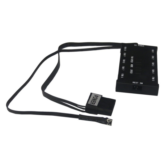 - riadiaca jednotka umožňuje pripojenie až 10ks ventilátorov a ovládanie tlačidlami priamo na jednotke, napájanie jednotky cez konektor "molex" z PC zdroja