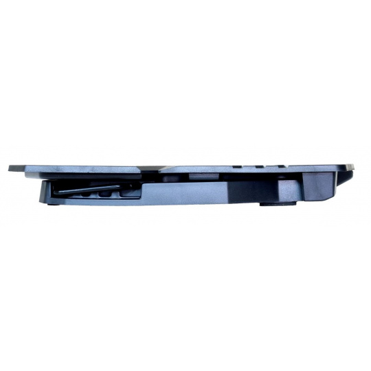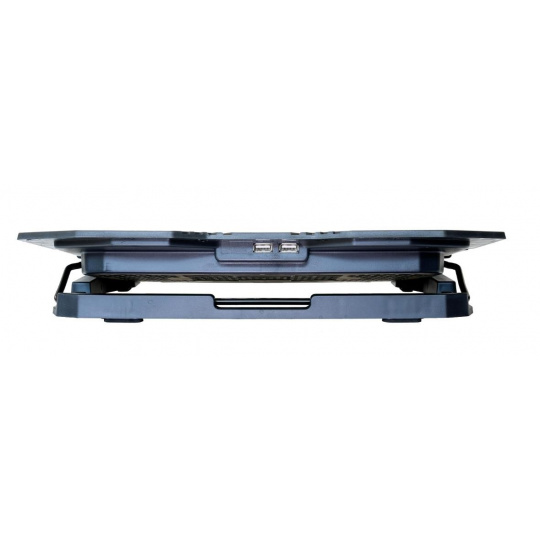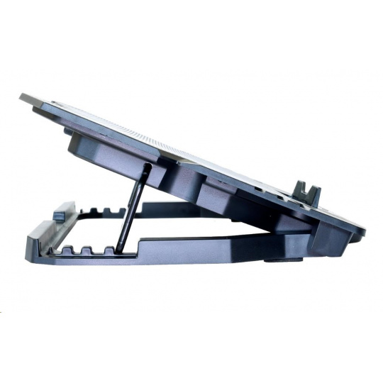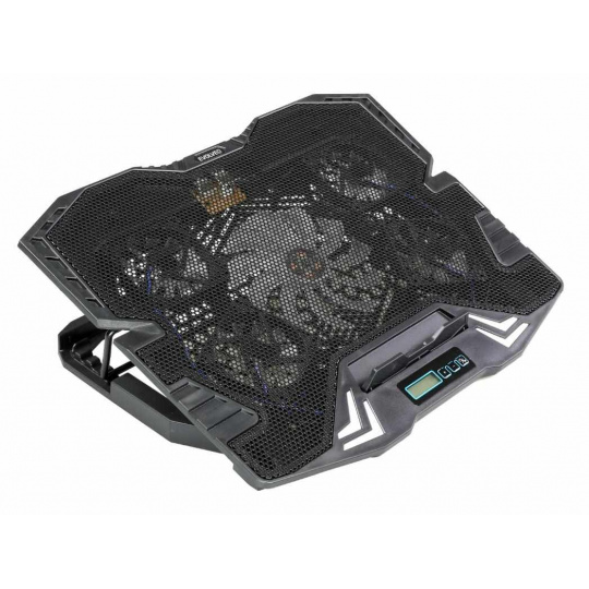 Herný nastaviteľný chladiaci stojan pre notebooky do veľkosti 15.6". 1x 120 mm a 4x 60 mm ventilátor. 2x USB 2.0. Regulácia otáčok ventilátora, displej.