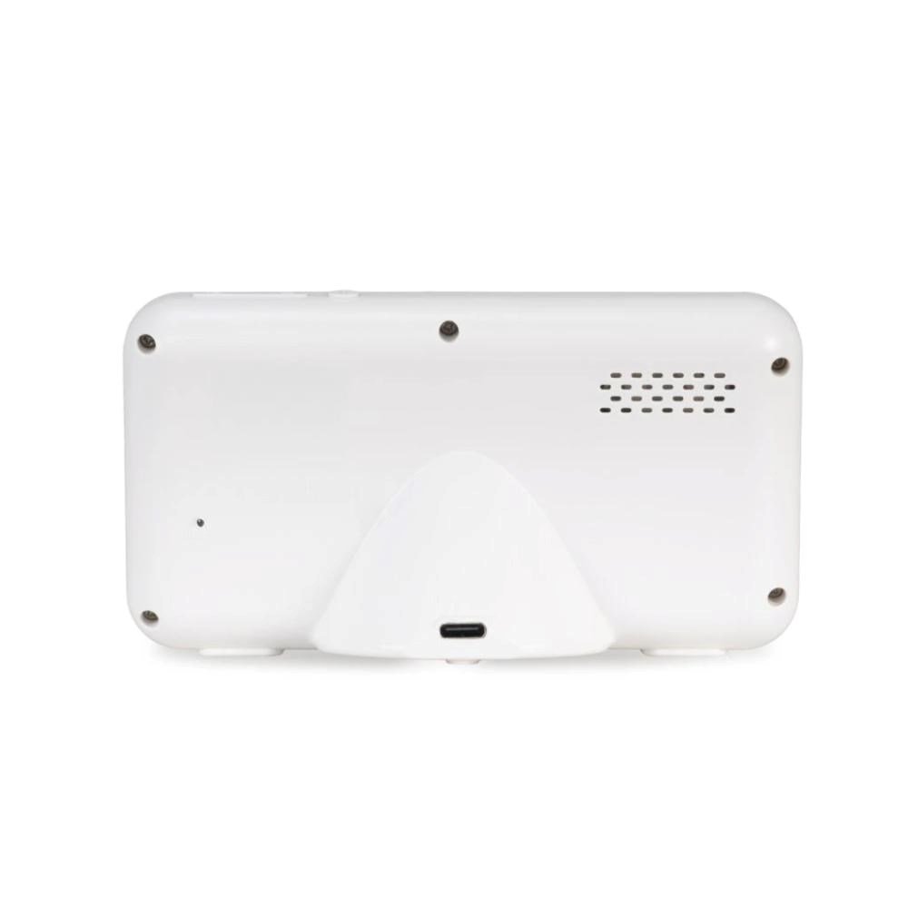 Čtyři LED indikátory na boku zobrazují sílu zvuku z dětského pokoje – takže upozornění zachytíte i tehdy, když se zrovna nedíváte na displej.