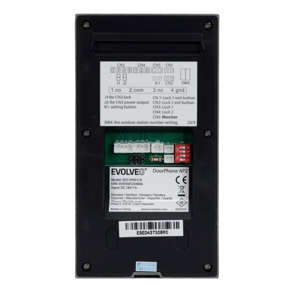 Videotelefon EVOLVEO AP2 je moderný videotelefon s Aplikáciou SMART LIFE na diaľkové ovládanie, Full HD obrazom, dvojicou relé pre ovládanie otvárania vstupnej bránky a vjazdovej brány. Vďaka jednoduchému zapojeniu pomocou len dvoch vodičov, zvládne jeho inštaláciu naozaj každý. Navyše je monitor vybavený vnútornou 32GB pamäťou na zaznamenávanie udalostí pred kamerou, takže vám neujde žiadny poštár s balíčkom.