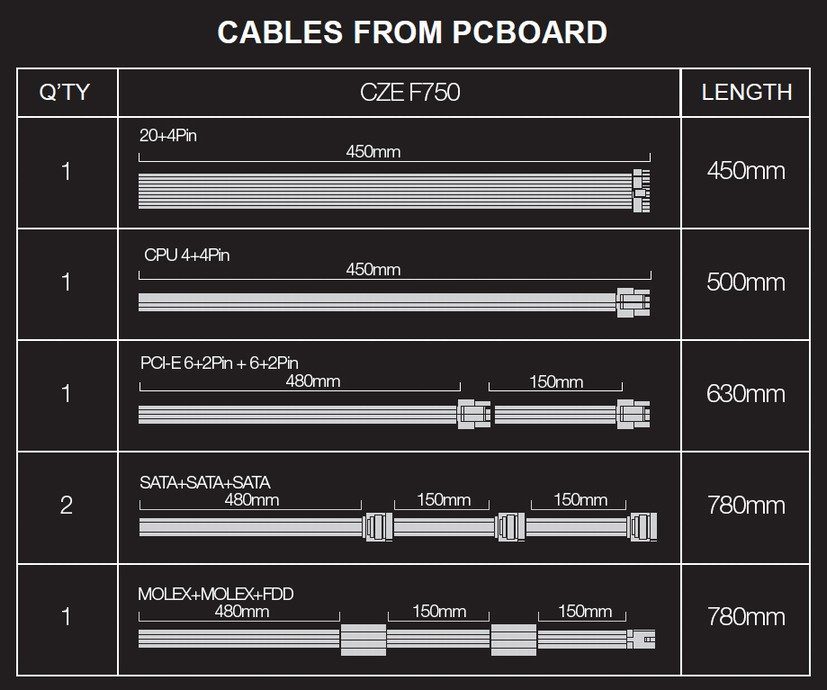 - PCI-E (6+2) +(6+2)pin (480+150 mm)
