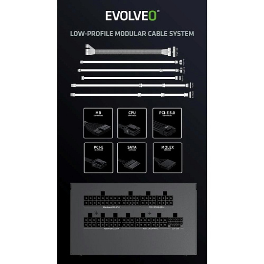 EVOLVEO G1000 zdroj 1000W, 80+ GOLD, ATX 3.1, aPFC, 140 mm ventilátor, záruka 3 roky, černý