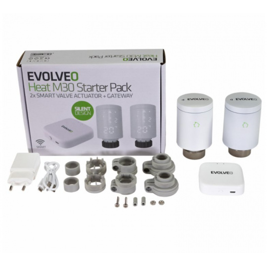 .EVOLVEO Heat M30 Starter Pack, 2× chytrá termostatická hlavice na radiátor & centrální jednotka