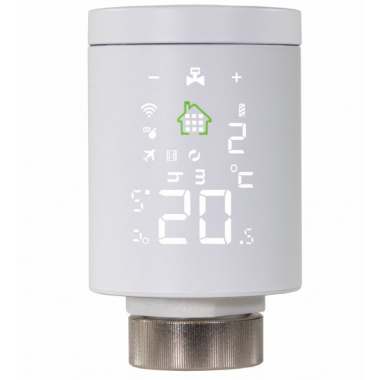 Chytrá bezdrôtová termostatická hlavica na radiátor, set obsahuje dva kusy + centrálnu Wi-Fi jednotku, ovládanie cez aplikáciu Android/iOS v češtine, white paper LED displej s dotykovým ovládaním, kompatibilný s Google Assistant a Amazon Alexa, denné a týždenné plánovanie, pripojenie na závit M30 a kompatibilný s ventilmi RA, RAV, RAVL
