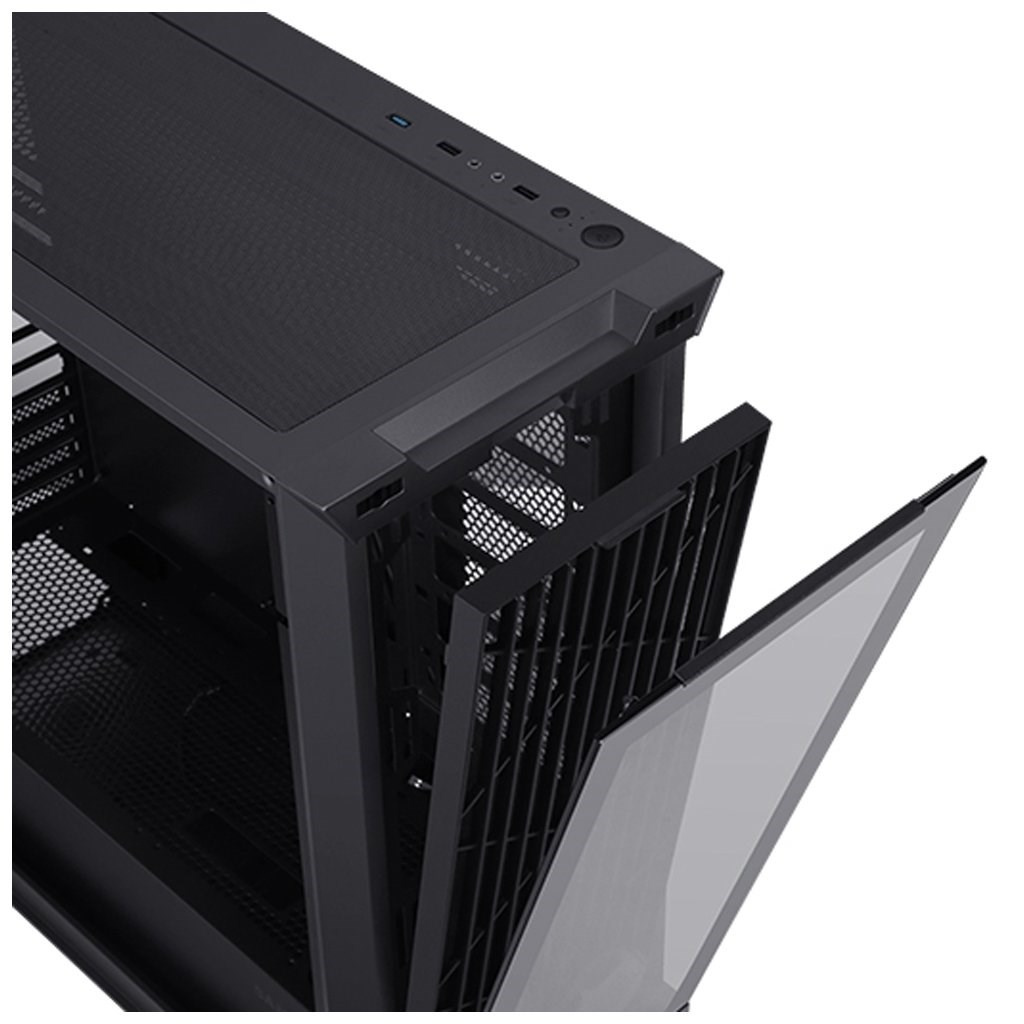 Počítačová skriňa - ATX, mATX (Micro ATX) a mITX (mini ITX), voliteľný predný panel, balenie obsahuje sklenený predný panel (temperované sklo) a predný panel s mriežkou, 2x 3,5", 3x 2,5", 2x USB 2.0, 1x USB 3.0, vstup na slúchadlá/mikrofón, chladič CPU 164mm, grafická karta 280/390mm (390mm pri demontáži HDD rámečka), bez zdroja, bočnice temperované sklo