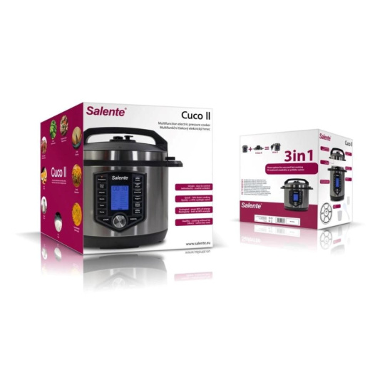 Salente Cuco II spája tri spôsoby prípravy pokrmov v jednom modernom zariadení. Hrniec môžete použiť ako tlakový, pomalý alebo na restovanie. Režimy sa líšia podľa použitých pokličiek. V jednom hrnci si ľahko a rýchlo pripravíte výborný guláš, zeleninu v pare alebo domáci poctivý vývar.
