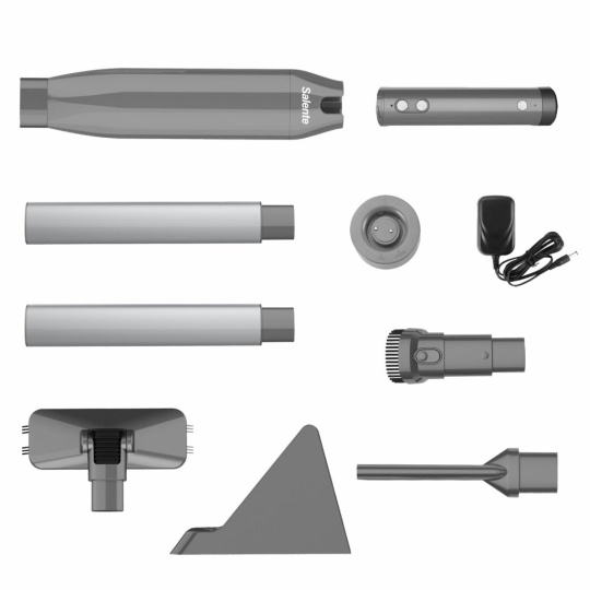Salente HandyPlus je dodávaný s praktickým stojanom, štetkou na škáry a hubicou 2v1. Hubicu 2v1 môžete využiť ako samostatnú štetku na škáry na upratovanie ťažko dostupných miest alebo vysunutím prachového štetca jemne odstrániť prach zo žalúzií, kníh alebo klávesnice.