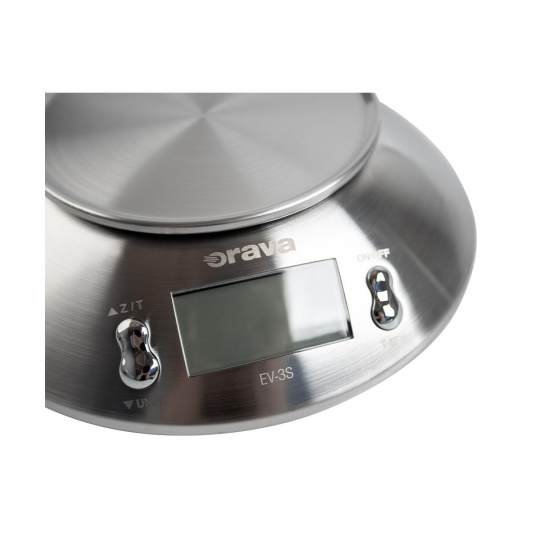ORAVA EV-3 S digitální kuchyňská váha, LCD displej, přesnost 1 g, funkce TARE, nerez, časovač