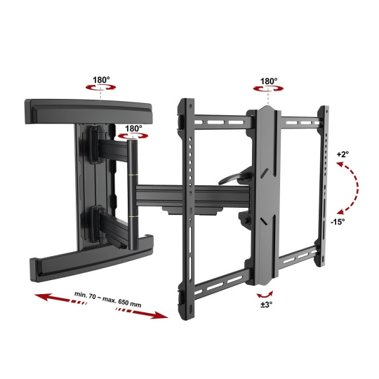 Výborný držiak na televíziu Fiber Novelty Norton Nástenný držiak TV 43"-80" výborné spracovanie, vzdialenosť od steny 70-650mm, otočný +/-90°, sklon +2°/-15°, VESA 200x100 až 600x400, nosnosť 50kg Záleží Vám na kvalite, a zároveň aj na dizajne a v neposlednom rade na rozumnej cene? Držiak Fiber Novelty Norton spĺňa všetky tieto požiadavky. Nástenný polohovateľný držiak na zavesenie televízorov s uhlopriečkami 43" až 80" a úplne bezpečnou nosnosťou 50kg (držák bol testovaný pri zaťažení 120kg). Plné nastavenie polohy televízora s možnosťou každodennej zmeny polohy - otáčanie do strán, sklápanie, nastavenie vzdialenosti od steny, korekcia roviny. Všetko v úplne úžasnom dizajne, ktorý určite ocení každý. Na držiak je poskytnutá záruka 3 roky. Držiak QLED OLED LED LCD plazma TV v výbornom spracovaní - Fiber Novelty Norton Technické údaje: nosnosť 50kg na televízory a monitory s uhlopriečkou 43" až 80" na všetky typy a značky televízorov, ktoré podporujú VESA štandardy podporuje VESA štandardy v rozmedzí 200x100 až 600x400 nastaviteľná vzdialenosť od steny v rozmedzí 70mm až 650mm otáčanie TV do strán +/- 90° sklápanie TV v rozmedzí +2° až -15° korekcia roviny obrazovky +/- 3° krásny moderný dizajn profesionálna konštrukcia, úplná bezpečnosť a spoľahlivosť precízne spracovanie s dôrazom na detail krytky na káble a na nástený úchyt dodávané vrátane inštalačného materiálu farebné prevedenie čierne záruka 5 rokov Držiak na televízie a monitory Fiber Novelty Norton Podporované VESA štandardy na zavesenie televízorov: VESA 200x100 VESA 200x200 VESA 300x100 VESA 300x200 a 200x300 VESA 300x300 VESA 400x200 a 200x400 VESA 400x300 a 300x400 VESA 400x400 VESA 500x300 VESA 600x400 všetky aj nestandardné VESA rozmerov v rozmedzí 200x100 až 600x400 Precízne spracovanie s dôrazom na detail, krásny dizajnový vzhľad a najvyššia miera spoľahlivosti a bezpečnosti - to sú hlavné prednosti držiakov Fiber Novelty Norton. Profesionálny držiak na televízie Fiber Novelty Norton Držiaky Fiber Novelty Norton sú vhodné na zavesenie všetkých dostupných typov televízorov aj monitorov: zavesenie LED televízorov zavesenie LCD televízorov zavesenie OLED televízorov zavesenie QLED televízorov zavesenie zakrivených Curved televízorov zavesenie plazmových televízorov zavesenie LCD, LED monitorov zavesenie TFT monitorov zavesenie špeciálnych televízorov a monitorov