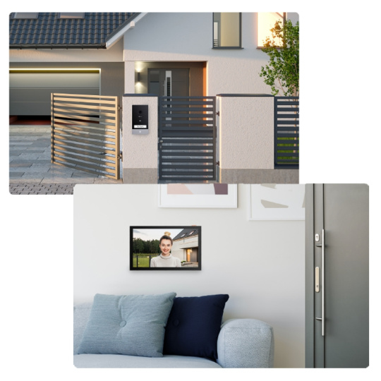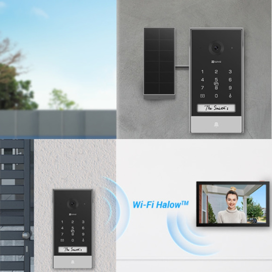 EP7 je 100% batériový domový telefón s možnosťou solárneho nabíjania a je pripravený pre veľké domy a vily. Umožňuje vám ovládať ako bránu pre automobily, tak predné dvere, a využíva technológiu Wi-Fi HaLow™ pre silné spojenie s vnútorným monitorom napriek dlhému dosahu prenosu a silným stenám, zatiaľ čo chytro optimalizuje využitie batérie.