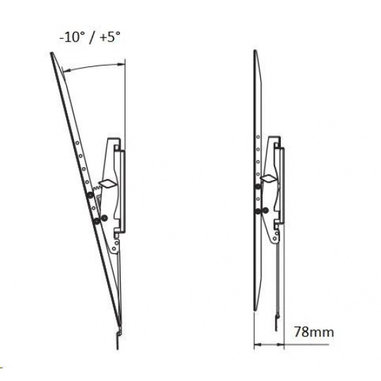 Sklopný držiak na TV 55" až 90" a podporou VESA štandard 200x200 až 800x600, nosnosť 90kg LCD držiak TV sklopný Fiber Mounts D90 Nová generácia špičkových sklopných držiakov, pri ktorých je kladený dôraz na najvyššiu kvalitu, absolútnu bezpečnosť a funkčnosť. Držiaky umožňujú náklon obrazovky v rozmedzí +5° až -10°, náklon je možné samozrejme zabezpečiť v požadovanej polohe. Držiak podporuje štandardizované zavešenie obrazoviek, VESA štandard 200x200 až 800x600. Bezpečnosť je zabezpečená automatickým systémom dvoch západiek, ktoré zabezpečia obrazovku proti vysadeniu alebo náhodnému pádu ihneď po nasadení na držiak. Uvoľnenie je potom možné pomocou dvoch táhel, ktoré schováte za obrazovkou. Bezpečnosť zvyšuje aj kvalitný materiál a robustná oceľová konštrukcia. Nosnosť držiaka je certifikovaná na maximálne zaťaženie až 90kg. Vzdialenosť obrazovky od steny je 78mm. Dodávame v čiernom prevedení. Na držiak je poskytovaná záruka 10 rokov. Technické údaje: maximálne zaťaženie 90kg na obrazovky s uhlopriečkou 55" až 90" podpora VESA štandardov 200x200 až 800x600 náklon obrazovky nahor až +5° náklon obrazovky nadol až -10° zabezpečenie obrazovky v požadovanom uhle sklonu Vzdialenosť TV od steny 78mm automatický systém zabezpečenia obrazovky proti vysadeniu a náhodnému pádu uvoľnenie pomocou 2 táhel, ktoré sú schované za obrazovkou kvalitná bezpečná konštrukcia robustný materiál TOP kvalita, profesionálne spracovanie, 100% funkčnosť farba čierna záruka 10 rokov Držiak podporuje VESA štandardy: VESA 200x200 VESA 300x200 a 200x300 VESA 300x300 VESA 400x200 a 200x400 VESA 400x300 a 300x400 VESA 400x400 VESA 600x400 a 400x600 VESA 800x400 VESA 800x600