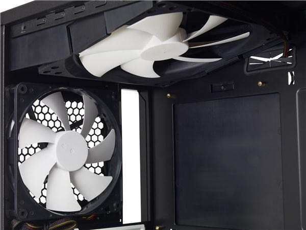 - Vrchný: 2 - 120/140 mm ventilátory (nie sú súčasťou balenia) - pozície podporujú tiež 240/280 mm štíhle radiátory