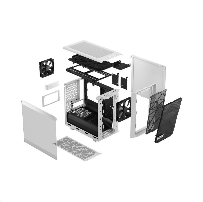 FRACTAL DESIGN skříň Meshify 2 Nano White TG Clear Tint, USB 3.1 Type-C, 2x USB 3.0, bez zdroje, miniITX