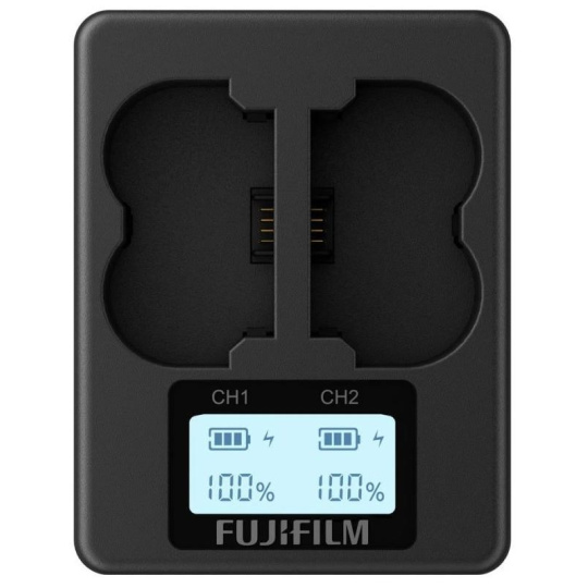 Up your charging efficiency with this FUJIFILM BC-W235 Dual Battery Charger, which is capable of charging two NP-W235 batteries at once. An integrated backlit screen also displays the charging status for both batteries..