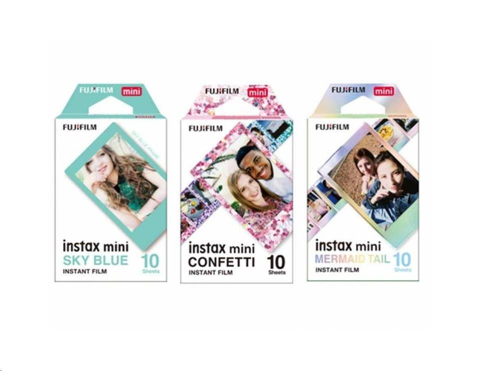 Exkluzívne balenie filmov Instax Mini. Každý zo štyroch balíčkov nesie jedinečný dizajn rámčeka, čo vám dáva možnosť vytvoriť fotografie, ktoré nielen zachytávajú okamihy, ale aj rozprávajú svoj vlastný príbeh plný kreativity a osobného výrazu. Užívajte si okamžité tlače s Instax Mini a urobte svoje spomienky ešte výnimočnejšími. Balenie zahŕňa tri odlišné dizajny okrajov: CONFETTI pre veselé okamihy, SKY BLUE, ak chcete vyjadriť pozitívnu náladu a harmóniu, a dúhový okraj MERMAID TAIL pre nádych kúzla a fantázie.