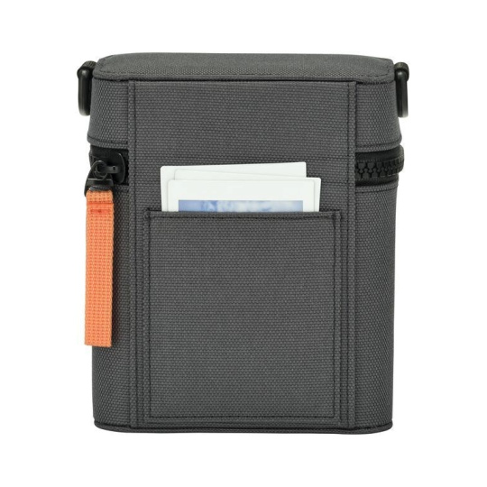 Fujifilm pri návrhu venoval pozornosť každučkému detailu – čierno-šedé farebné prevedenie dopĺňa výrazné oranžové poutko zipsu, ktoré ladí s akcentmi priamo na tele fotoaparátu. Výsledkom je harmonický, premyslený celok, ktorý pôsobi moderným dojmom a jednotne.