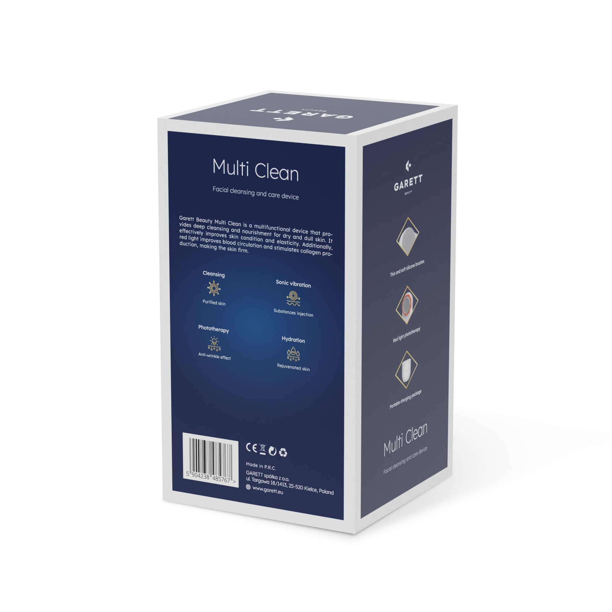 Garett Multi Clean je navrhnutý s ohľadom na vaše pohodlie. Vďaka jednoduchému ovládaniu, regulácii výkonu a úspore energie je starostlivosť o pleť čistým potešením. Priložené puzdro a nabíjacia stanica zabezpečia, že zariadenie bude vždy pripravené na použitie, nech ste kdekoľvek. Zvyšujte štandard svojej starostlivosti o pleť už dnes – neváhajte ani chvíľu!
