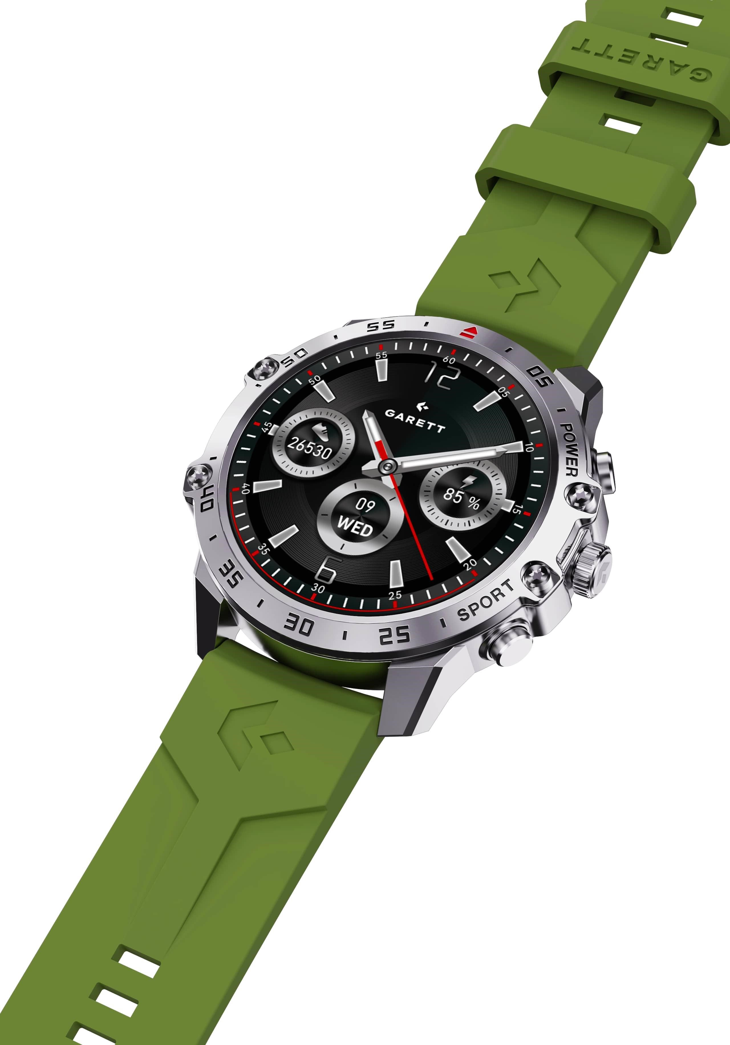 - Súprava obsahuje: GARETT smartwatch, prídavný silikónový remienok, nabíjací kábel, QSG návod