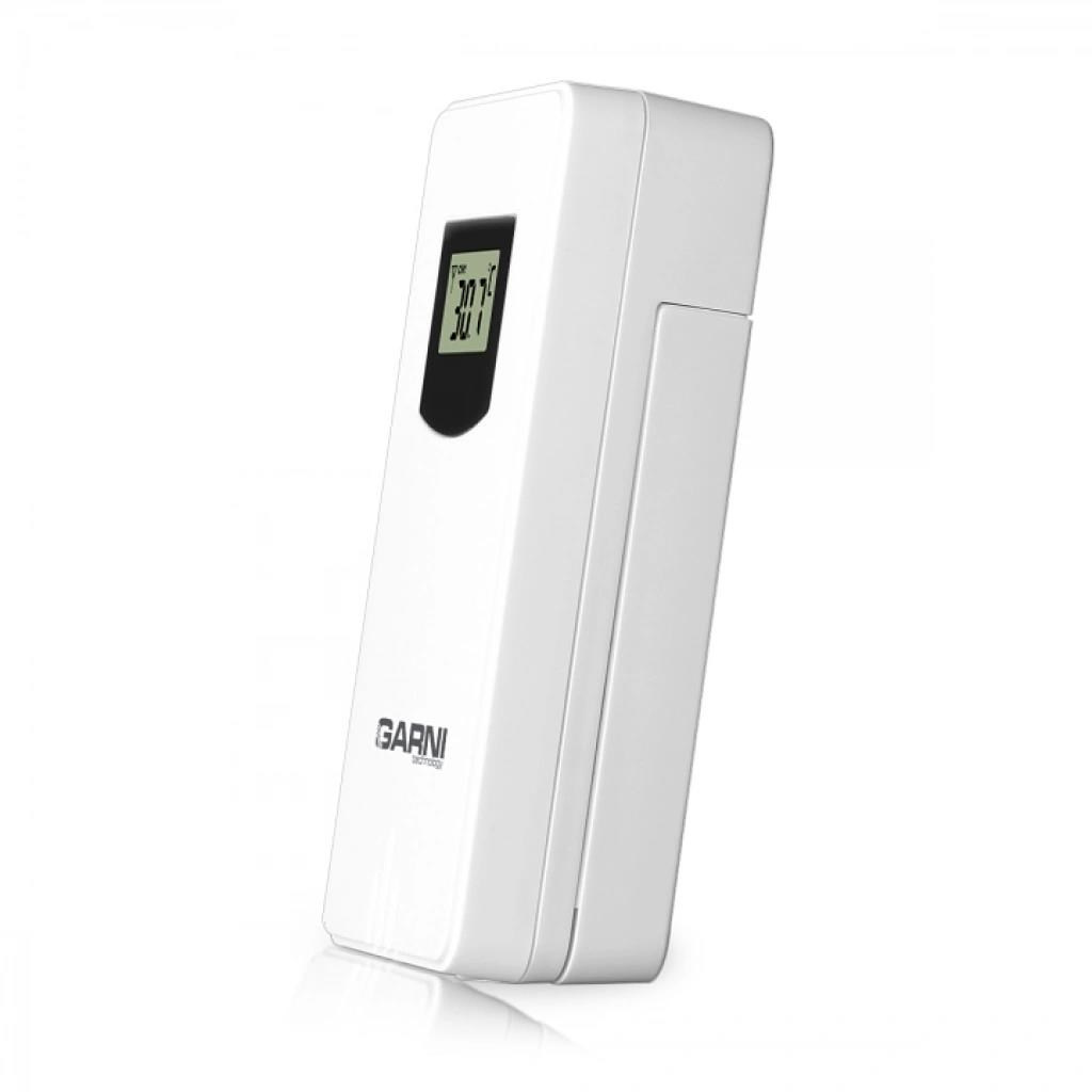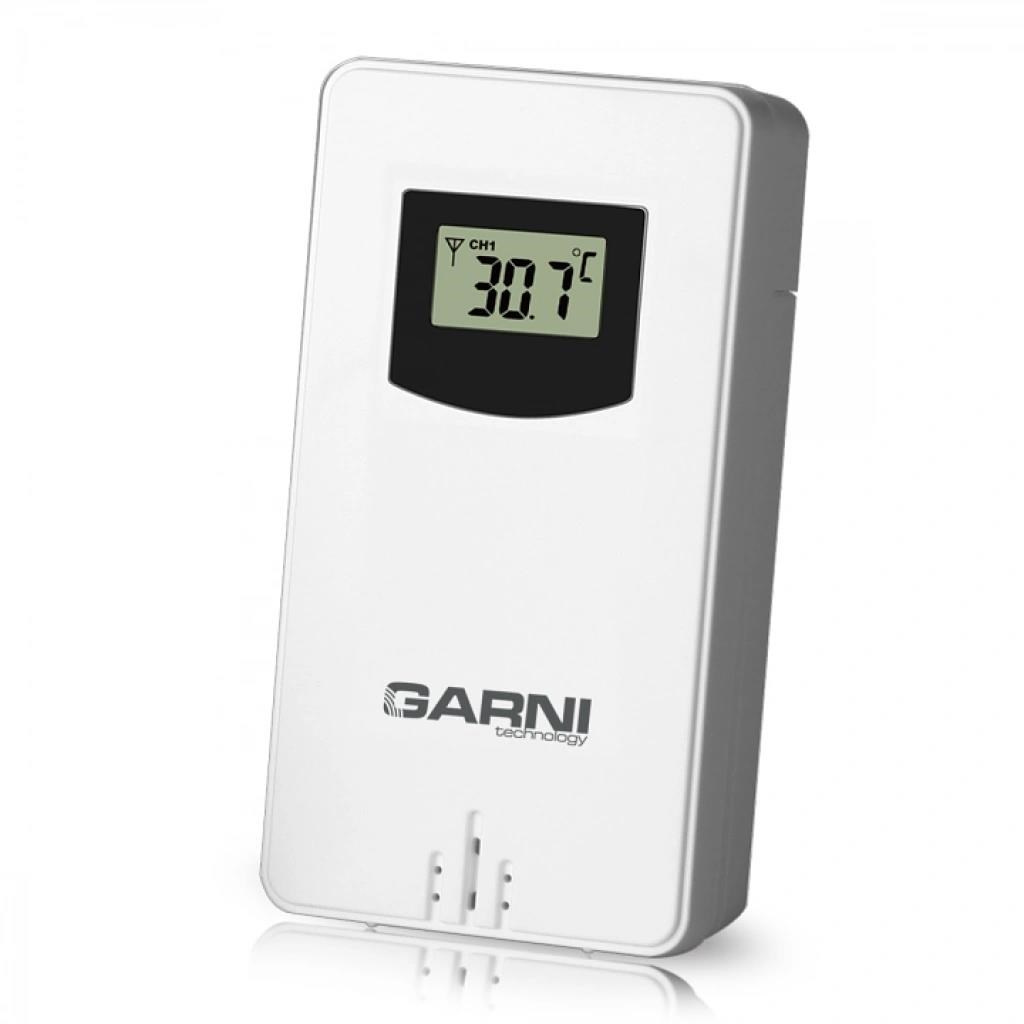 Bezdrôtové čidlo na meranie teploty, určené pre meteorologickú stanicu GARNI 365 Arcus vlhkosti odolné, krytie IPX4 (odolné voči striekajúcej vode) displej o rozmeroch 19 x 11 mm veľkosť číslic na displeji: teplota 6,5 mm meranie teploty 3 kanály maximálny RF výkon 10 dBm (10 mW) možnosť postavenia a zavešenia farba biela