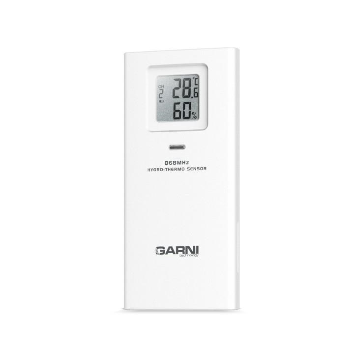 Sedemkanálové bezdrôtové čidlo na meranie teploty a relatívnej vlhkosti, určené pre Wi-Fi meteorologickú stanicu GARNI 3015 Arcus, GARNI 2055 Arcus, GARNI 1085 Arcus, GARNI 975, GARNI 1025 Arcus, GARNI 925T, hobby meteostanice GARNI 750 a chytrý digitálny teplomer s vlhkomerom GARNI 419T.