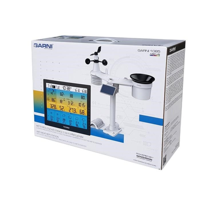 Meteorologická stanica s Wi-Fi, 6-dňovou predpoveďou a profesionálnym integrovaným bezdrôtovým senzorom 7-v-1, model GARNI 1085 Arcus, zhromažďuje presné a podrobné údaje o počasí, ktoré následne v reálnom čase nahráva pomocou zabudovaného modulu Wi-Fi a miestnej Wi-Fi siete na meteorologický server ProWeatherLive. Ten umožňuje automatické nahrávanie údajov z meteorologickej stanice a voľný prístup ku všetkým údajom odkiaľkoľvek, kde je prístup na internet, prostredníctvom webového prehliadača alebo mobilnej aplikácie. Súčasne server PWL odosiela do hlavnej jednotky informácie o dohľadnosti, oblačnosti a 6-dňovej predpovedi počasia. Výrobok ponúka solídny výkon všetkým profesionálnym pozorovateľom a fanúšikom, a to vďaka širokej škále nastavení a senzorov. Stanica vám poskytne miestnu predpoveď, maximálne a minimálne hodnoty a celkové hodnoty všetkých meteorologických veličín, bez toho, aby ste museli použiť stolný počítač.