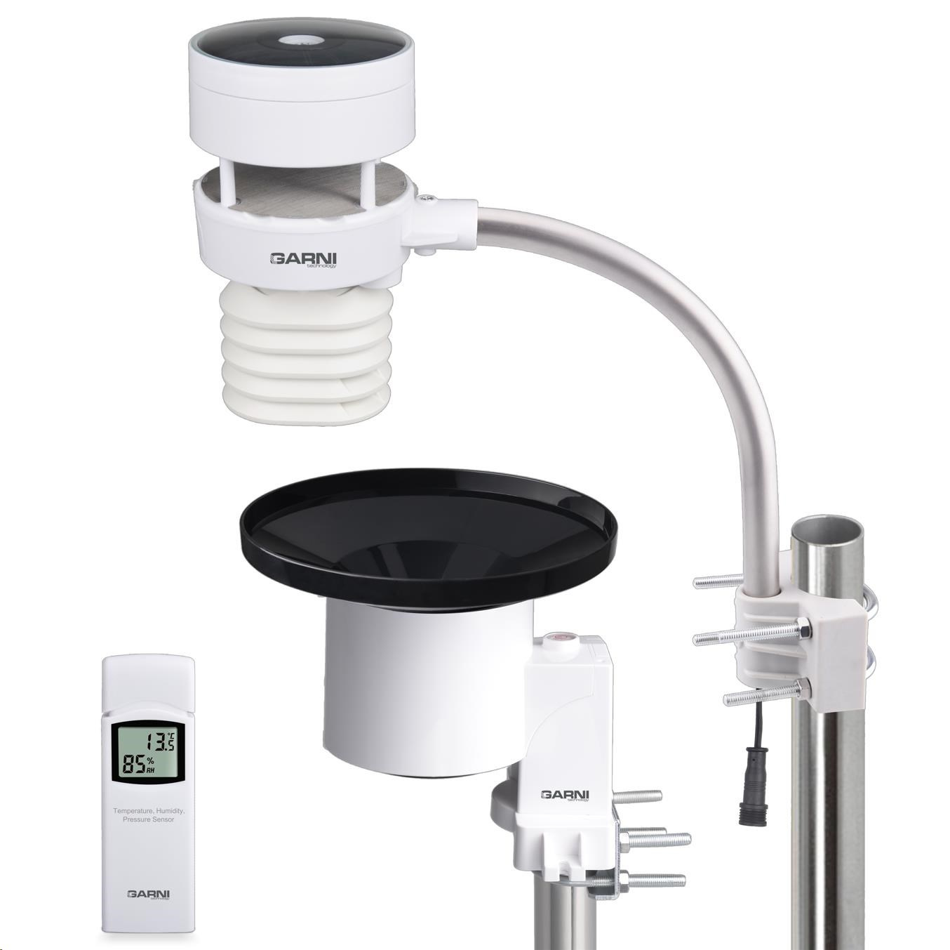– integrovaného čidla 6-v-1 GARNI 095HA s ultrazvukovým anemometrom zabudovaným solárnym panelom a