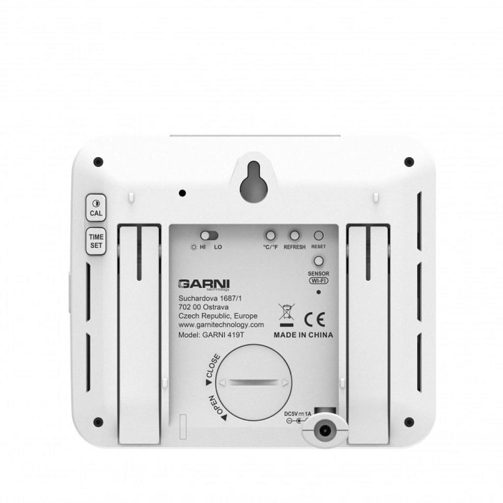 Chytrý viackanálový teplomer s vlhkomerom, model GARNI 419T má vstavaný modul WiFi a prostredníctvom svojho chytrého systému je kompatibilný s platformou Tuya IOT. Pomocou aplikácie Tuya Smart môžete sledovať teplotu a relatívnu vlhkosť hlavnej jednotky a bezdrôtových čidiel, kontrolovať históriu záznamov, nastavovať alarmy pre dané veličiny, spúšťať pokročilé funkcie za pomocou nameraných hodnôt a nameraná dáta odoslať na email v Excel súbore. Je možné ho prepojiť s ďalšími produktmi chytrej domácnosti, ovládanie potom prebieha cez aplikáciu v mobilnom zariadení. Hlavná jednotka aj bezdrôtové čidlo sú osadené švajčiarskymi čidlami SENSIRION. TUYA spolupracuje s platformou pre chytrú domácnosť Tuya pripojenie k miestnej Wi-Fi sieti 2,4 GHz spolupracuje s aplikáciou Tuya Smart jazykové mutácie aplikácie - čeština, slovenčina, angličtina farebný inverzný LCD displej o rozmeroch 90 x 81 mm stále osvetlený displej, 2 stupne jasu, nastavenie kontrastu v 15 úrovniach veľkosť číslic na displeji – čas 9 mm, dátum, skratka názvu dňa 7,5 mm, teplota 21,5 mm, relatívna vlhkosť 21 mm farby na displeji – čas, dátum, skratka názvu dňa biela, vnútorná teplota a rel. vlhkosť oranžová, vonkajšia teplota a rel. vlhkosť zelená meranie vnútornej a vonkajšej teploty a relatívnej vlhkosti zobrazenie teploty vo °C, alebo °F švajčiarska čidla SENSIRION možnosť použiť až 7 bezdrôtových čidiel (GARNI 055H, bazénové čidlo GARNI 057P) indikácia vnútornej tepelnej pohody 3 ikonami možnosť kalibrácie teploty a rel. vlhkosti vo vnútri i na jednotlivých kanáloch bezdrôtový prenos hodnôt vonkajšej teploty a relatívnej vlhkosti na frekvencii 868 MHz ikona sily signálu z bezdrôtových čidiel ikona pripojenia k miestnej Wi-Fi sieti pamäť na maximálne a minimálne namerané denno a celkové hodnoty teploty a relatívnej vlhkosti šípka vývoja teploty a rel. vlhkosti čas a dátum riadené z internetu s možnosťou manuálneho nastavenia budík s možnosťou opakovania bdenia (Snooze) po 5 minútach budicí signál - 4 sekundy 1 pípnutie za sekundu, 4 sekundy 2 pípnutia za sekundu, 4 sekundy 3 pípnutia za sekundu a potom stále 4 pípnutia za sekundu ikona slabých batérií možnosť aktualizácie firmware farba hlavnej jednotky biela napájanie sieťovým adaptérom a záložnou batériou možnosť postavenia a zavesenia Bezdrôtové čidlo GARNI 055H odolné voči vlhkosti meranie teploty a relatívnej vlhkosti švajčiarske čidla SENSIRION 7 kanálov možnosť postavenia a zavesenia farba biela možnosť postavenia a zavesenia napájanie batériami 2 ks typ AA (tužkové, nie sú súčasťou balenia) Obsah balenia hlavná jednotka 1 ks bezdrôtového čidla GARNI 055H síťový adaptér návod CZ, SK, EN, DE, PL, HU, NL